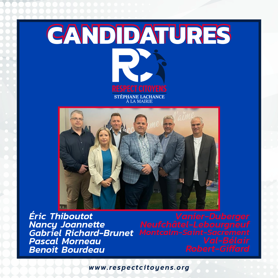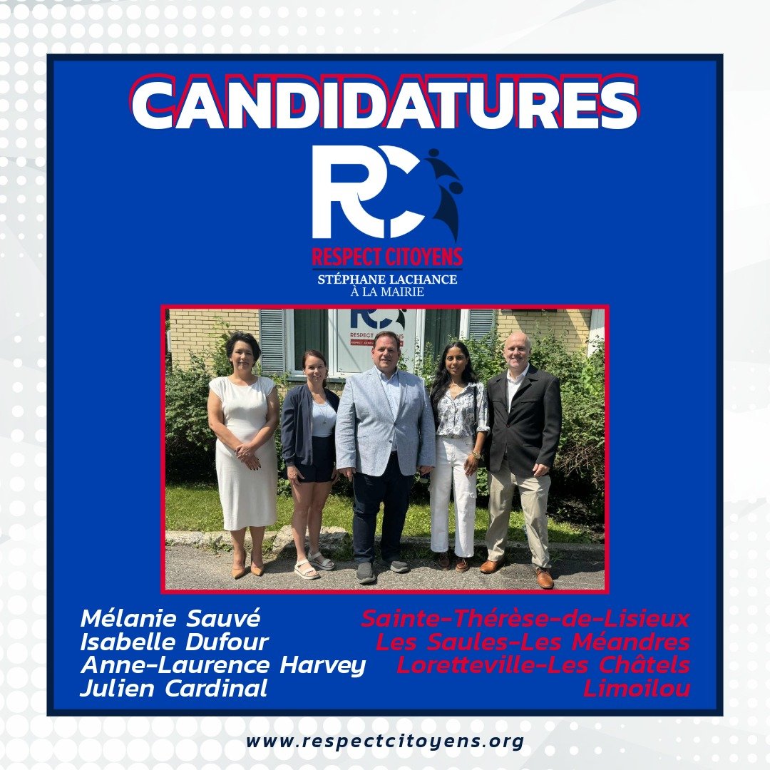 Québec, le 18 juillet 2025 – Le chef de Respect citoyens, Stéphane Lachance, accepte l'invitation de la Chambre de commerce et de l'industrie de Québec pour participer au débat des candidats à la mairie de Québec…